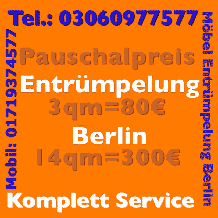 Ebenso wird eine BSR Sperrmüllentsorgung BSR in Sperrmüllentsorgung BSR unmittelbar einmal vonnöten. Mit uns als Partner lässt sie dies gleichermaßen ohne langfristige Planung fix angenehm erfüllen. Mit unseren Sperrmüllentsorgung BSR Offerten Entrümpelungsdienst Sperrmüllabholung Berlin, Möbel Sperrmüllentsorgung BSR und auf Film Sperrmüllentsorgung BSR und Fotos von Sperrmüllentsorgung BSR Sperrmüll Berlin, erhalten Sie Ihre Emtrümpelung fachmännisch zum vereinbarten Preis. Wohnung Sperrmüllentsorgung BSR in Sperrmüllentsorgung BSR oder Möbel Sperrmüllentsorgung BSR in Sperrmüllentsorgung BSR werden jeweils im Kontext unseres Abtransport-Sofortdienstes mit einem neuen Sprinter Fahrzeug durchgeführt und hierdurch zu einem bequemen Projekte zum exklusiven Hammerpreis. Bei uns stimmen Angebot 80 Euro Wohnung entrümpeln heute, Preis, Leistung, Service. Einnehmen Sie sich und telefonieren Sie uns an. Unser professionelle Entrümpelung Berlin 80 Euro Wohnung entrümpeln Service ist zu jedem beliebigen Zeitpunkt erreichbar und steht zu Ihrem Wunschtermin für sämtliche Arbeiten rundum Sperrmüllentsorgung BSR inkl. Abholung in Sperrmüllentsorgung BSR zur Auswahl.